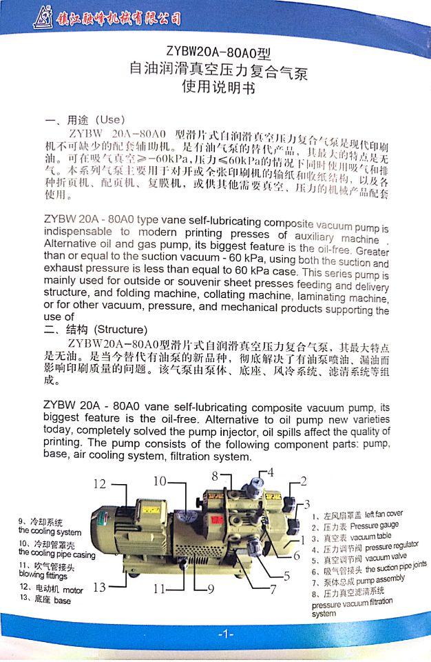 ZYBW80AO型自润滑真空压力复合气泵